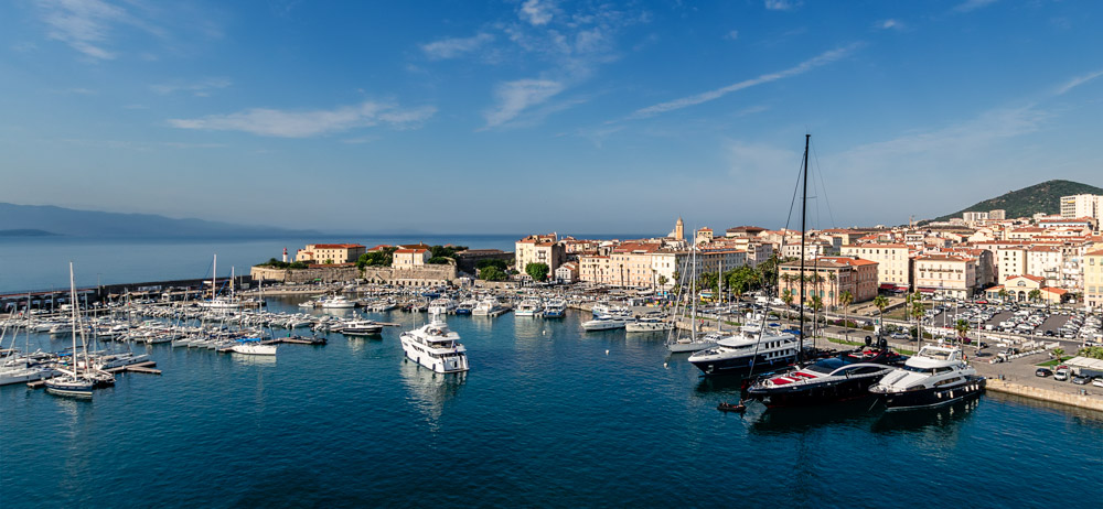 Der kleine Yachthafen von Ajaccio bietet einen bunten Querschnitt von Schiffen und Booten.