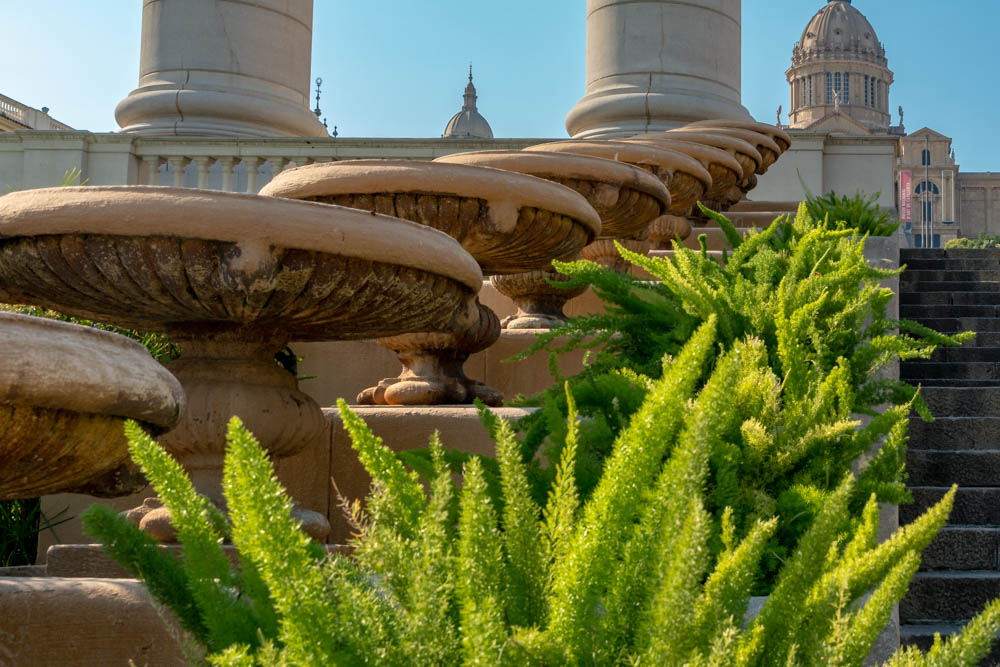 Von dort aus kann man sich langsam die Treppen Richtung Nationalmuseum hocharbeiten. Vorbei am Springbrunnen "Font Màgica de Montjuic" und dem "Plaça de les Cascades" ergeben sich immer wieder schöne Motive.