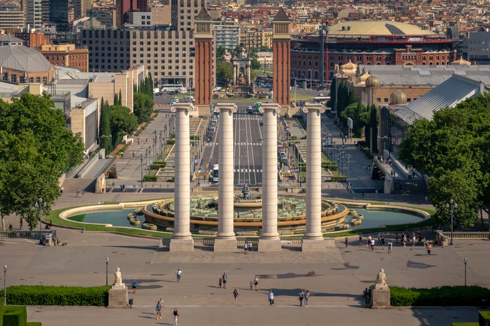 Von der Terrasse vor dem Nationalmuseum aus bekommt man einen guten Überblick und tolle Aussicht auf die Avinguda de la Reina Maria Cristina und die Plaça d'Espanya.