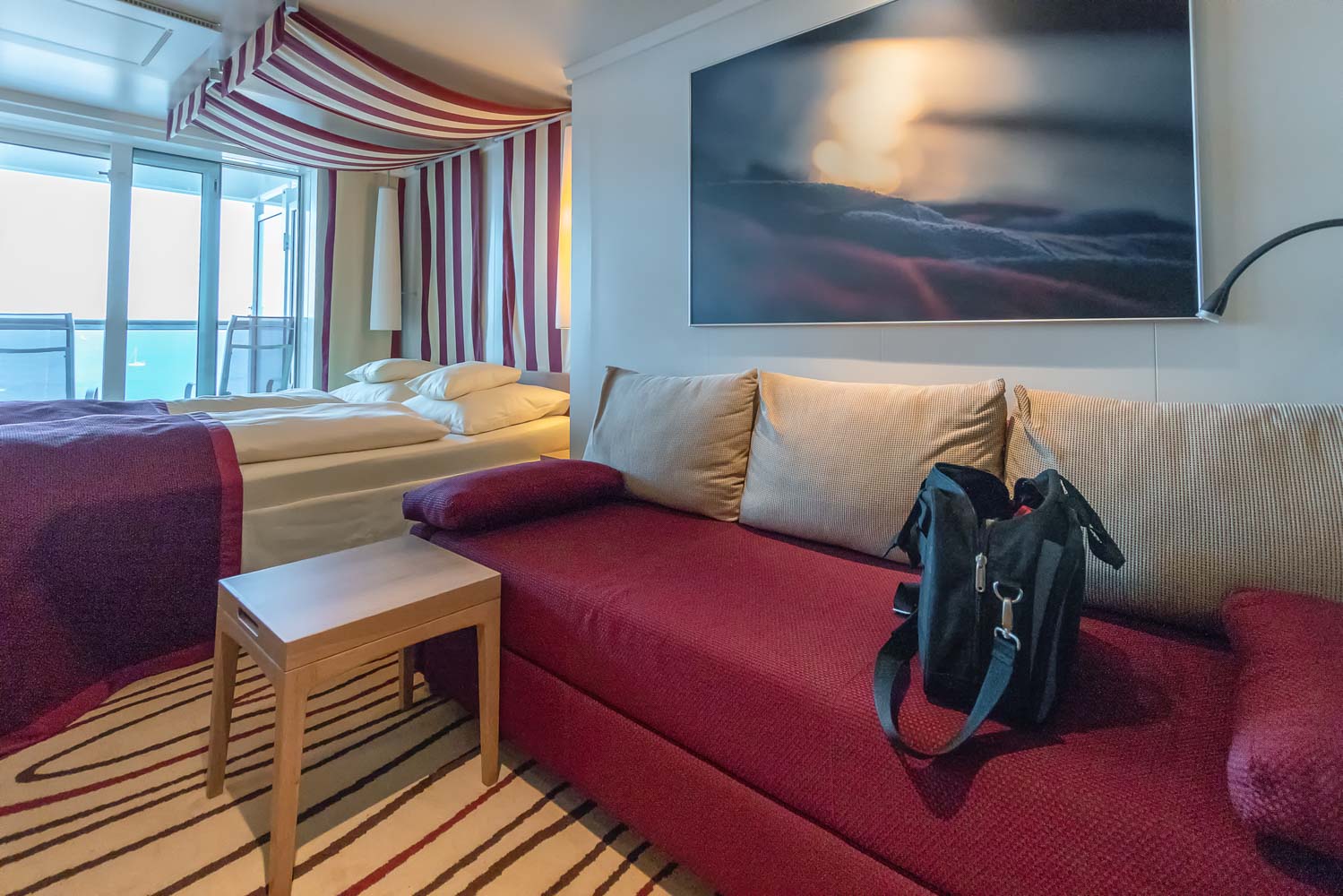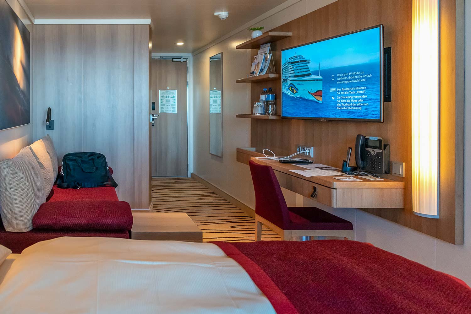Die Kabine war relativ geräumig, sehr hell und freundlich eingerichtet und hatte sogar einen begehbaren Kleiderschrank.