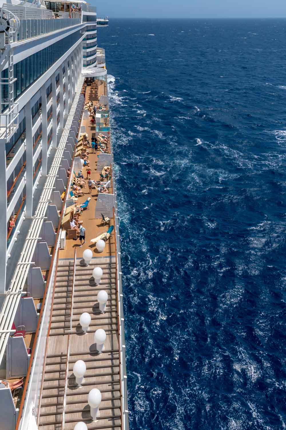 Wir mussten feststellen, dass so ein Kreuzfahrtschiff ganz schön weitläufig ist und sich die vielen Leute doch gut verteilen. Natürlich sind die Hot Spots wie Pooldeck und Lanai-Bar an solch einem Seetag sehr gut besucht. Wer eher einmal die Ruhe sucht, findet aber garantiert auch ein Plätzchen, wo nicht so viel los ist.